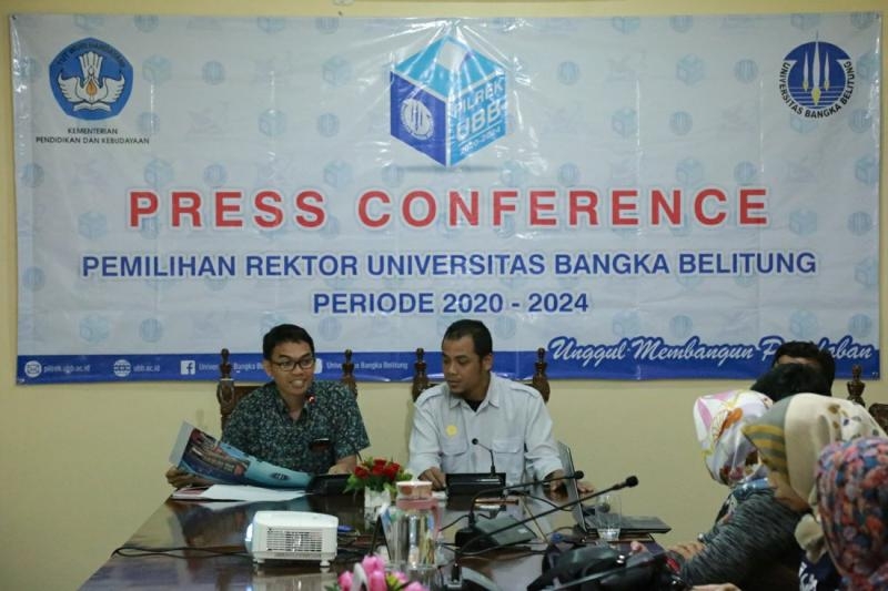 MERAWANG, UBB - Universitas Bangka Belitung (UBB) mengelar konferensi pers terkait pemilihan rektor periode 2020 ..